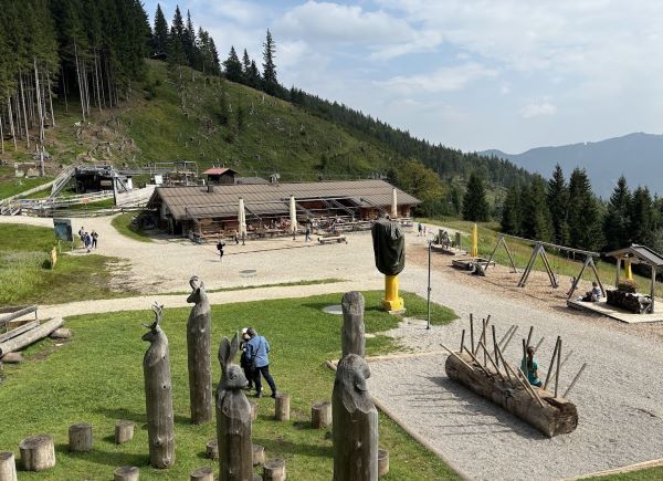 Oben gibt es eine Einkehrmöglichkeit an der Kolbensattelhütte und in Sichtweite der Terrasse einen schönen Abenteuer-Spielplatz. Was will man mehr?!